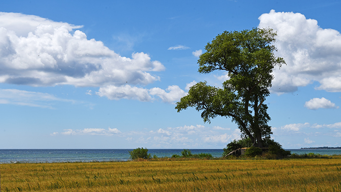Dann breche ich ohne Gepäck zu einem Ausflug nach Nordosten auf, zur Halbinsel Östergarn. Mein Ziel sind zwei besondere Wiesen, auf Schwedisch Ängar genannt. Das sind ausgedehnte Wiesen mit einem lockeren Baumbestand, die der Gemeinde gehörten und von den Bewohnern für Heu und zum Sammeln von Laub genutzt wurden. Deswegen werden sie auch als Laubheuwiesen bezeichnet.